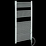 Sèche-serviettes électrique thermostatique plat chromé 600 x 1200mm - Dimensions: Hauteur 1200mm, largeur 600mm - Puissance 515 Watts - Consommation de l'élément chauffant 200 watts - Norme IP44 - Saillie au mur: 75mm - 23 Barres de 19mm d'épaisseur, répartie en 3 sections 4, 5 et 14 - Veuillez vous référer pour l'installation au guide sous la photo. Garantie 5 ans